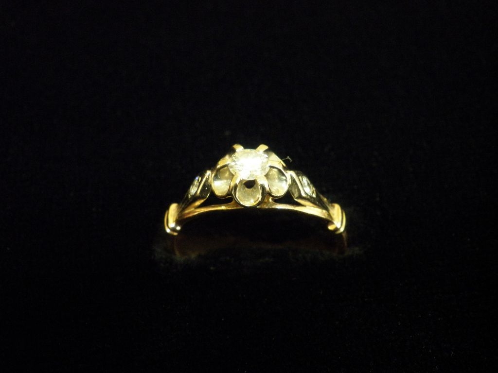 Златен пръстен с бели камъни