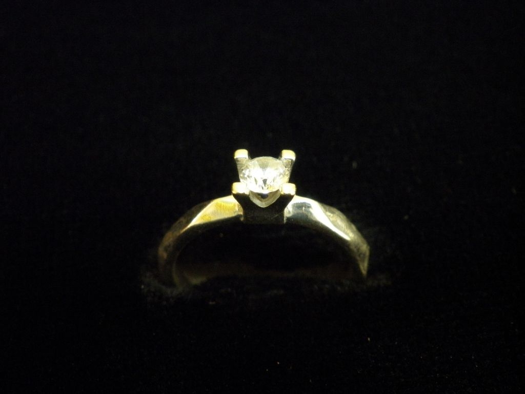 Златен пръстен годежен с бял камък