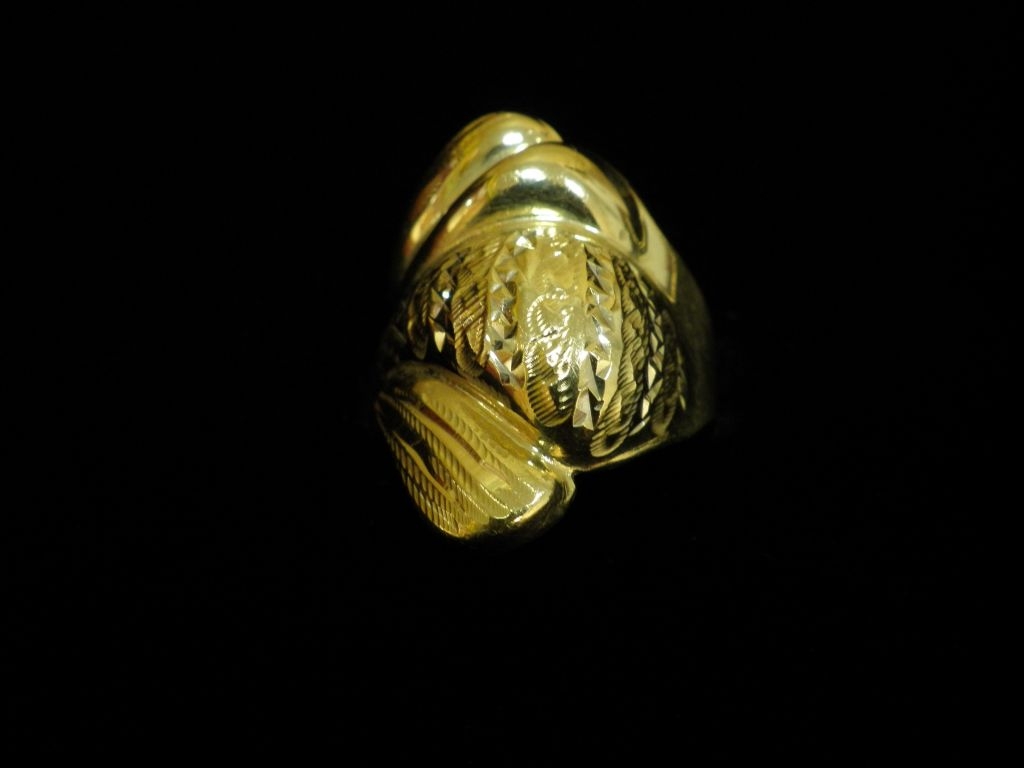 Златен пръстен с гравирано бяло и жълто злато,олекотен