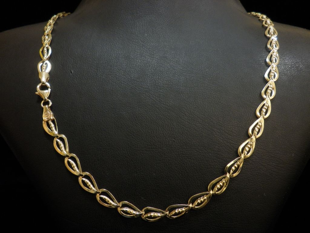 Златен синджир с гравирани елементи от жълто злато,олекотен