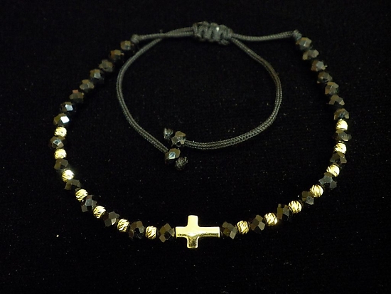 Златна гривна с черен конец и кръст