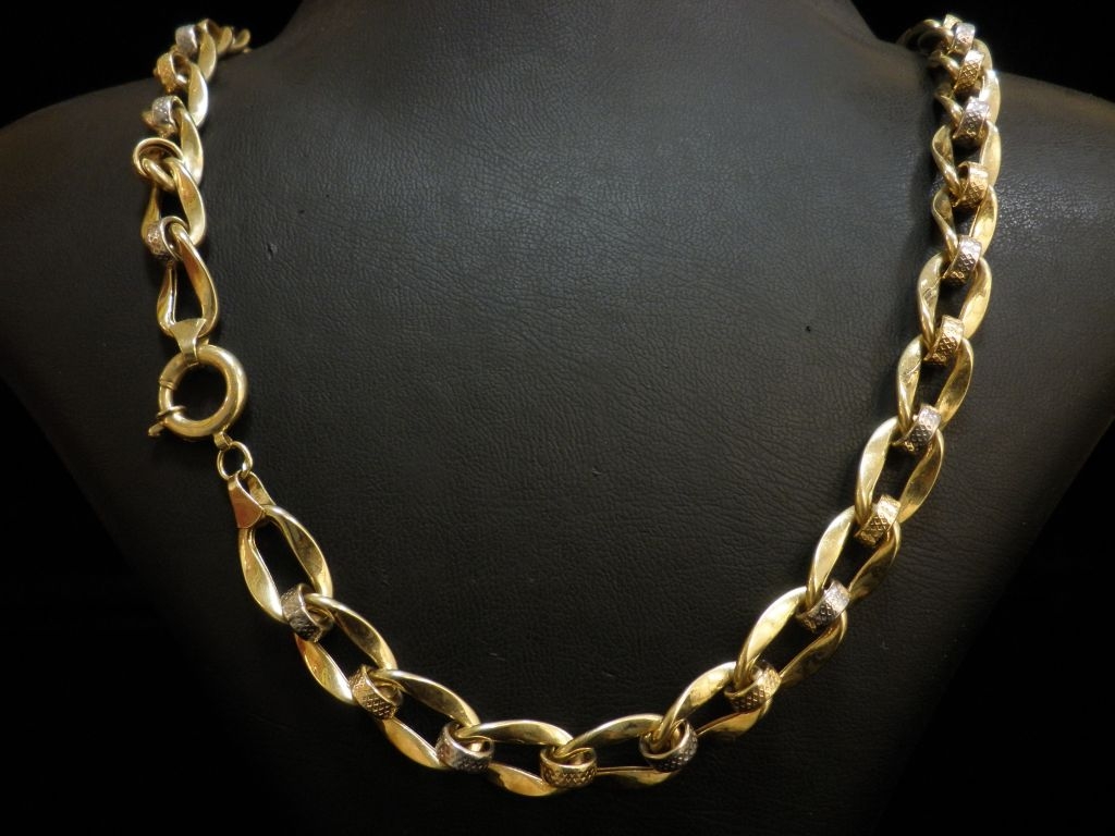 Златен синджир с елементи от бяло и жълто злато,олекотен