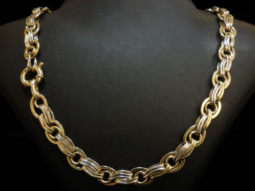 Златен синджир с елементи от бяло и жълто злато,олекотен