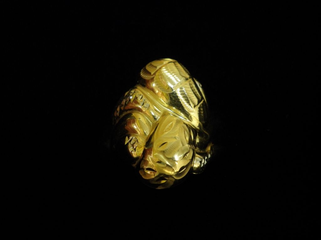 Златен пръстен с гравирано бяло и жълто злато,олекотен