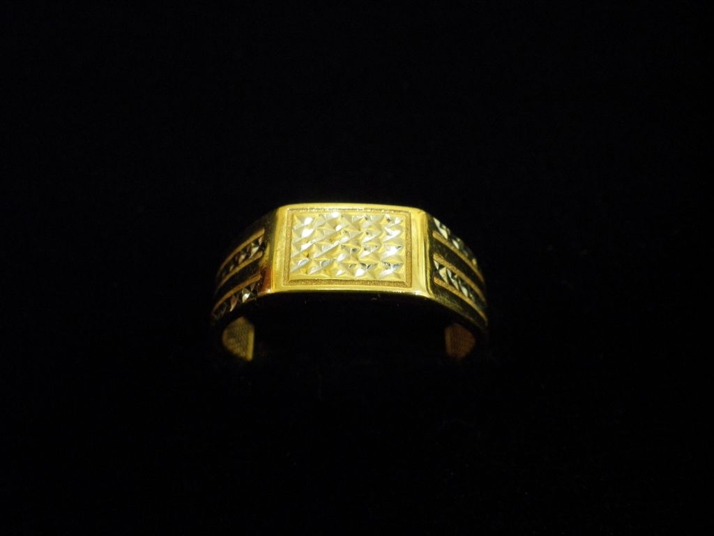 Златен пръстен с гравирано бяло и жълто злато