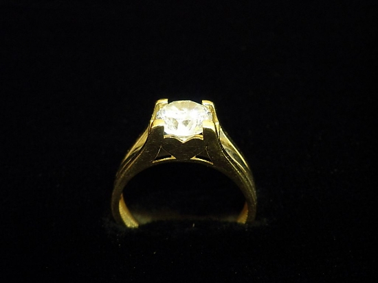 Златен пръстен годежен с бял камък