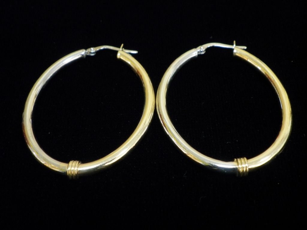 Златни обеци с бяло и жълто злато,олекотени