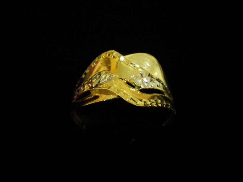 Златен пръстен с гравирано бяло и жълто злато,олекотен