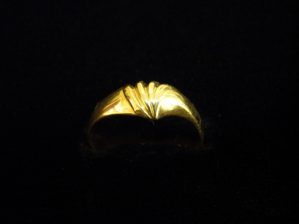 Златен пръстен с гравирано жълто злато
