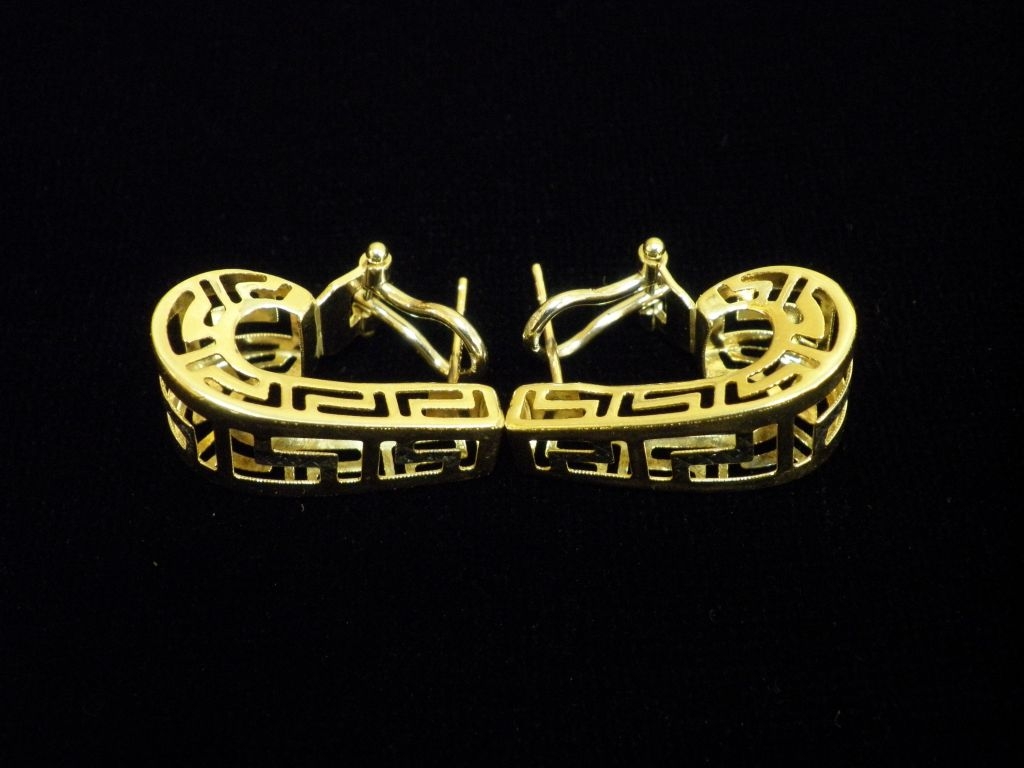 Златни обеци с елементи Версаче бяло и жълто злато,олекотени