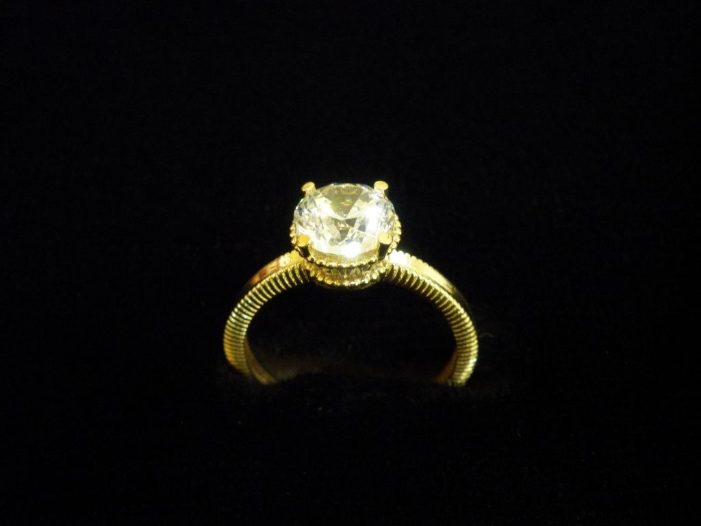 Златен пръстен годежен с бял камък