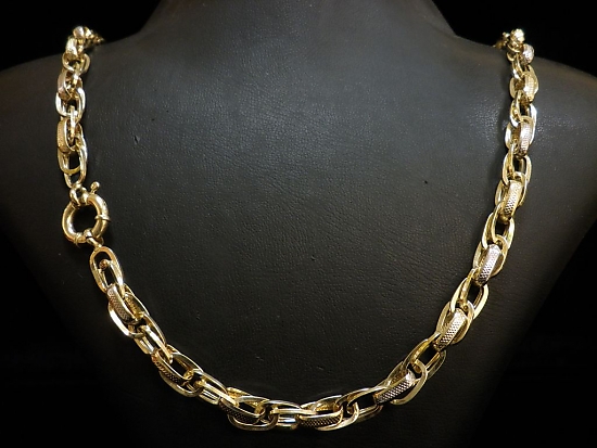 Златен синджир с гравирани елементи от бяло и жълто злато,олекотен