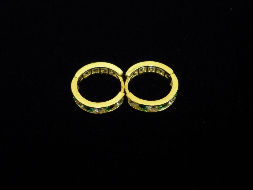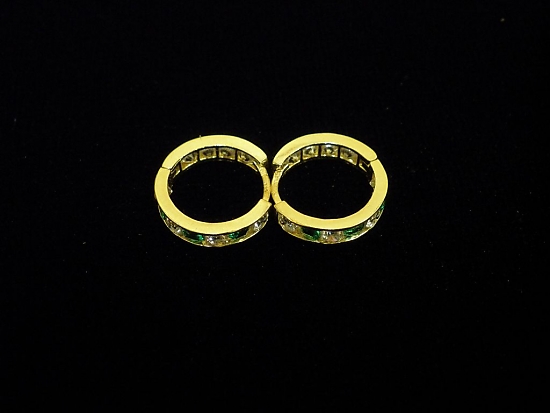 Златни детски обеци с бели и зелени камъни