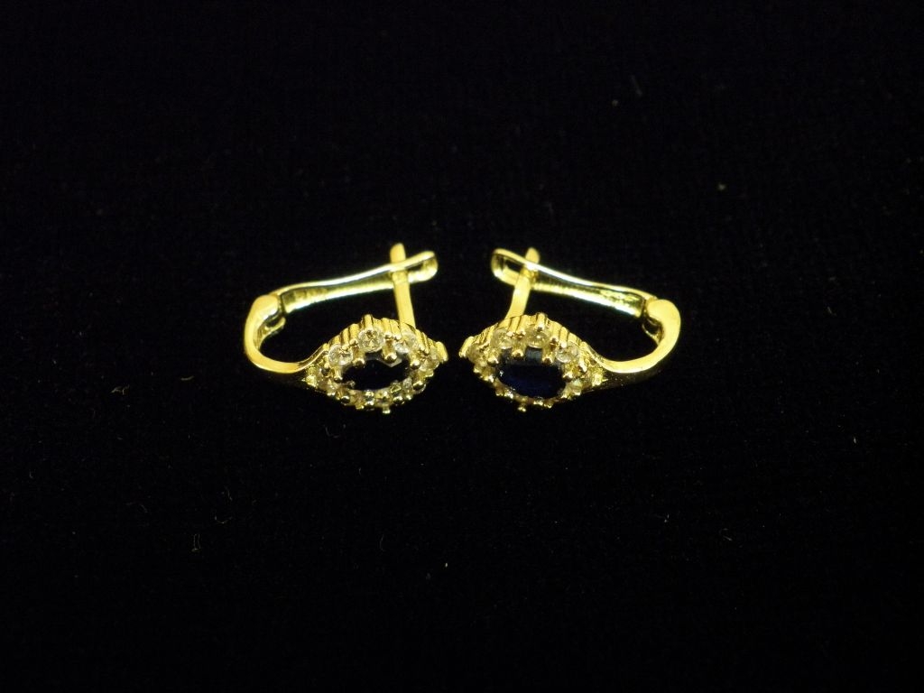 Златни детски обеци с бели и сини камъни,английско закопчаване