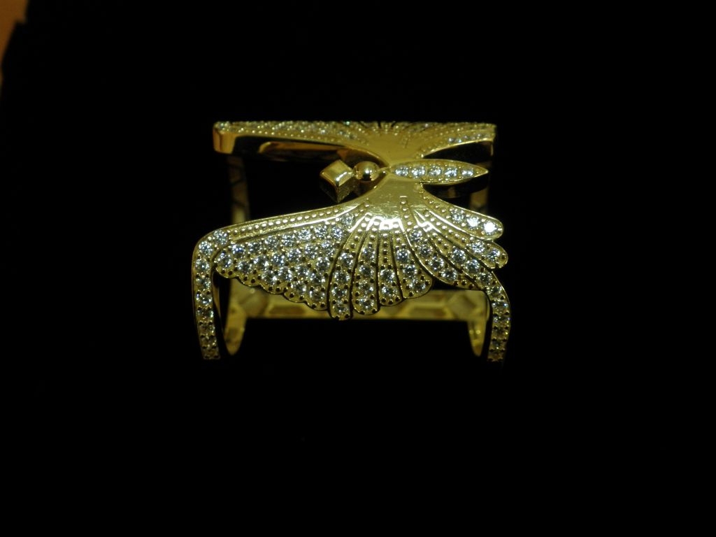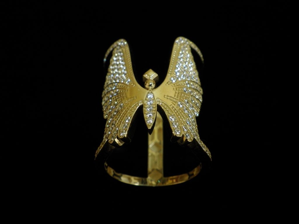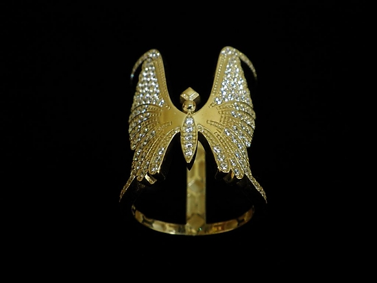 Златен пръстен с бели камъни