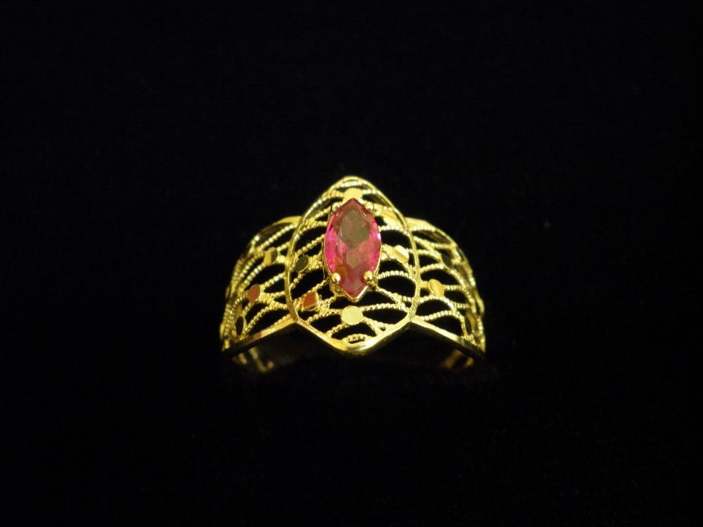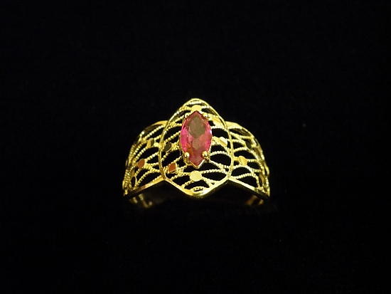 Златен пръстен с орнаменти от жълто злато и червен камък