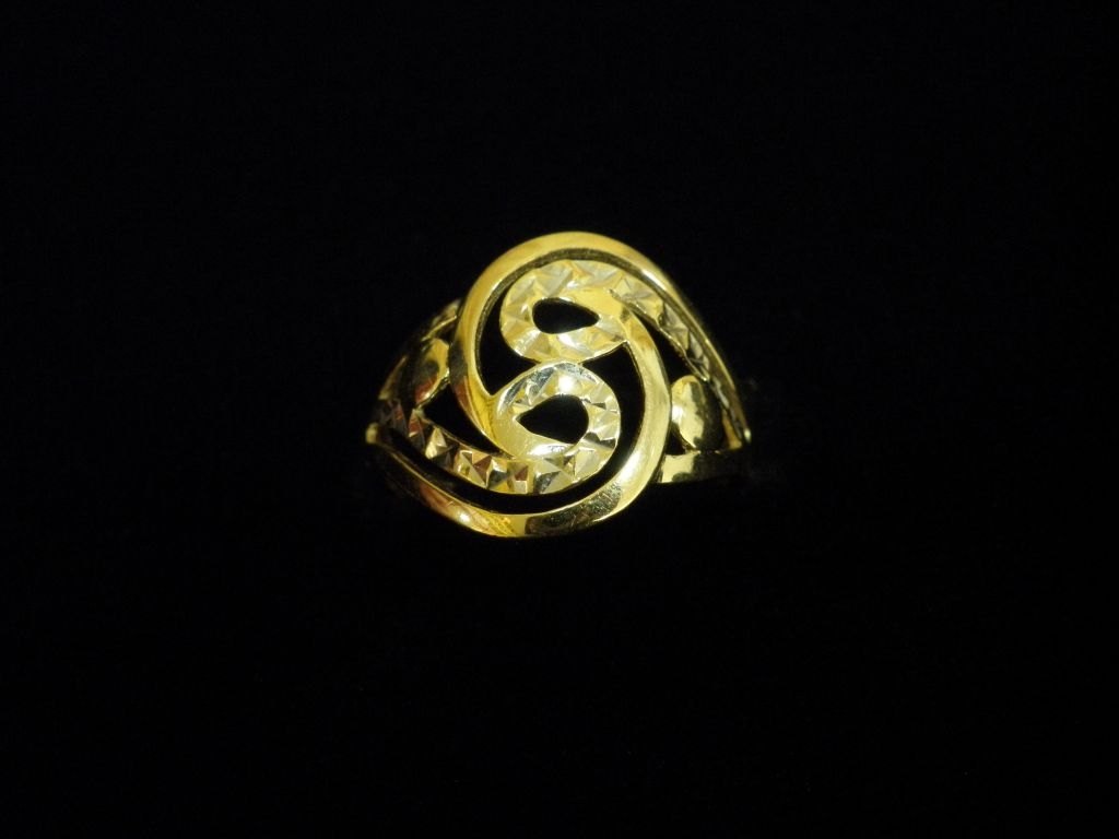 Златен пръстен с гравирано бяло и жълто злато,олекотен