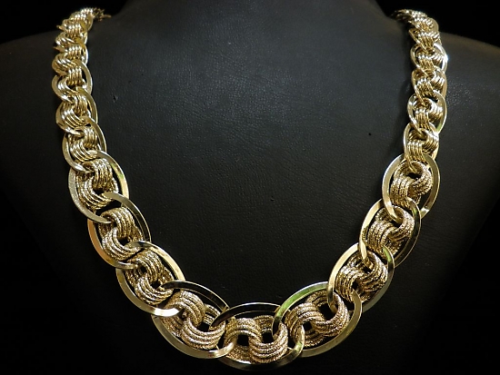 Златен синджир,колие с гравирани елементи от жълто злато