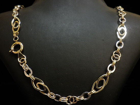 Златен синджир с елементи от бяло и жълто злато,олекотен