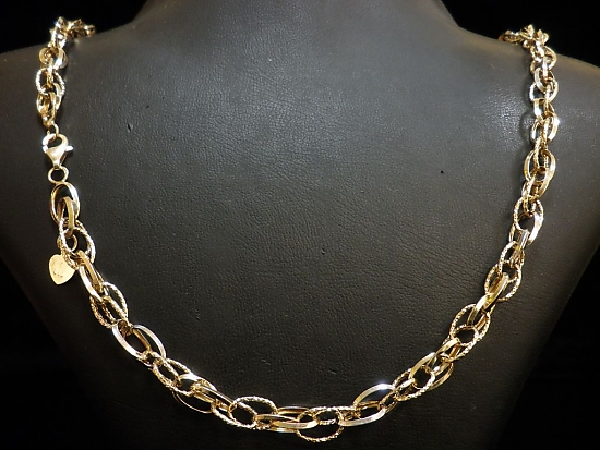Златен синджир с гравирани елементи от бяло и жълто злато,олекотен