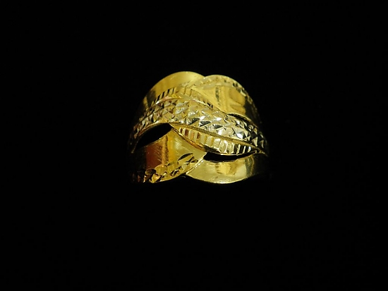 Златен пръстен с гравирано бяло и жълто злато,олекотен
