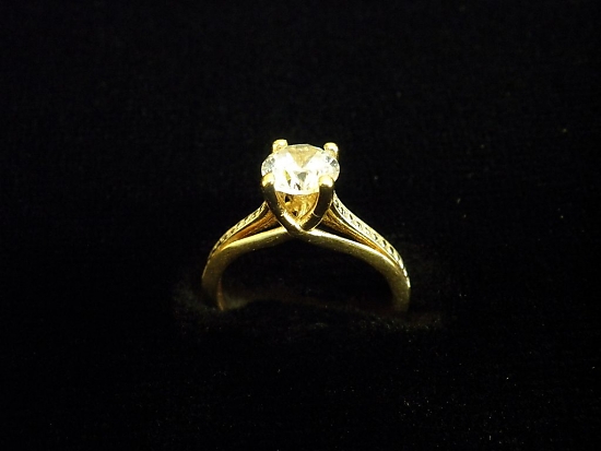 Златен пръстен годежен с бели камъни