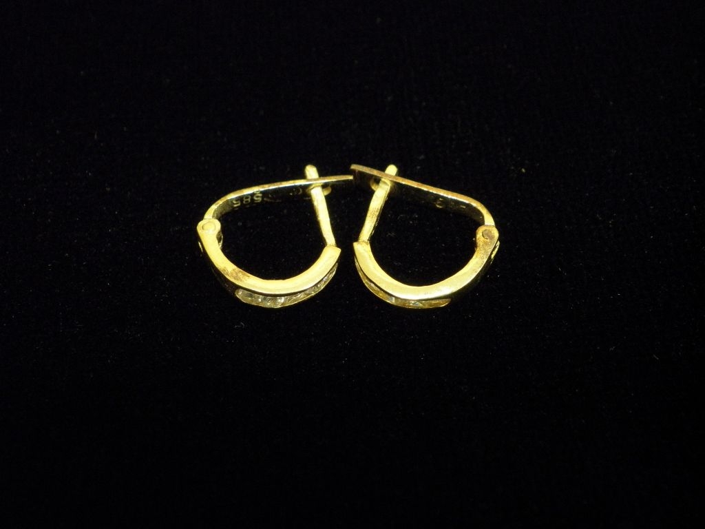 Златни обеци детски обеци с бели камъни,английско закопчаване