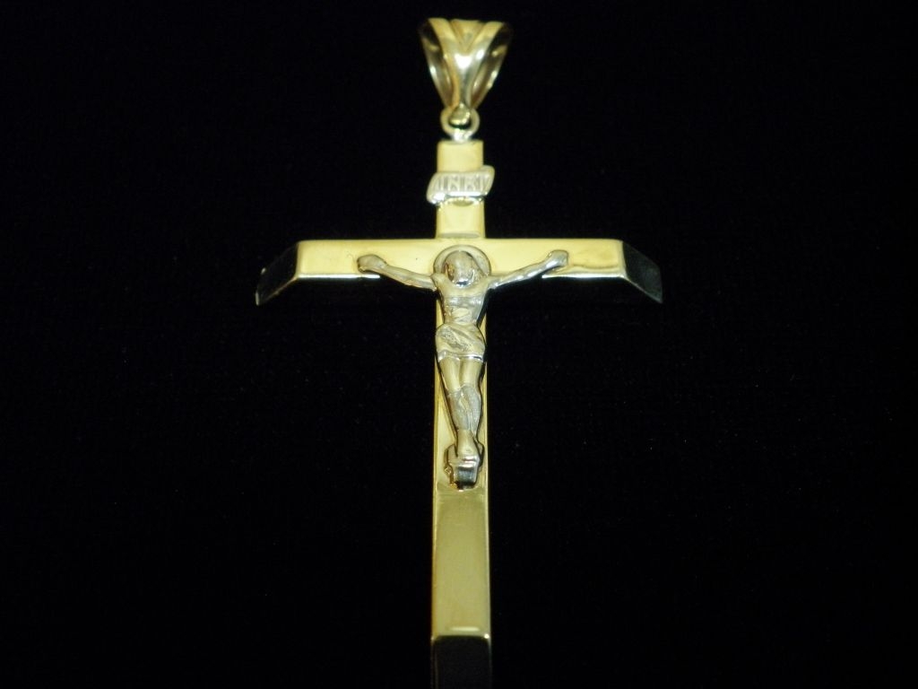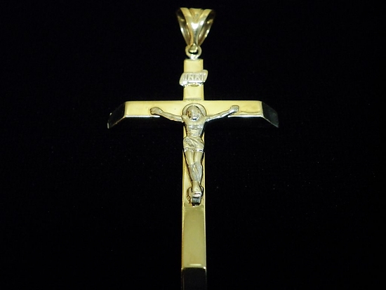 Златен кръст с Разпятие от бяло злато,олекотен