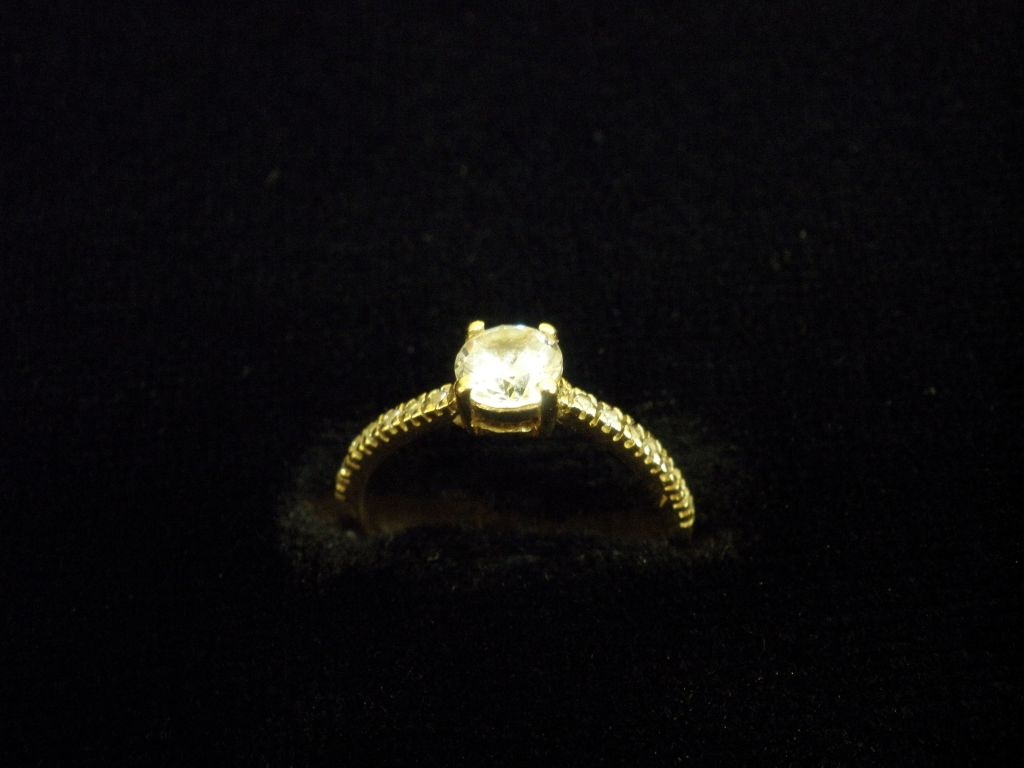 Златен пръстен годежен с бели камъни
