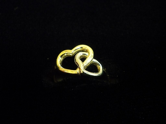 Златен пръстен със сърца от бяло и жълто злато