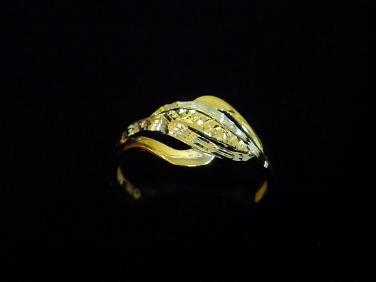 Златен пръстен с гравирано бяло и жълто злато