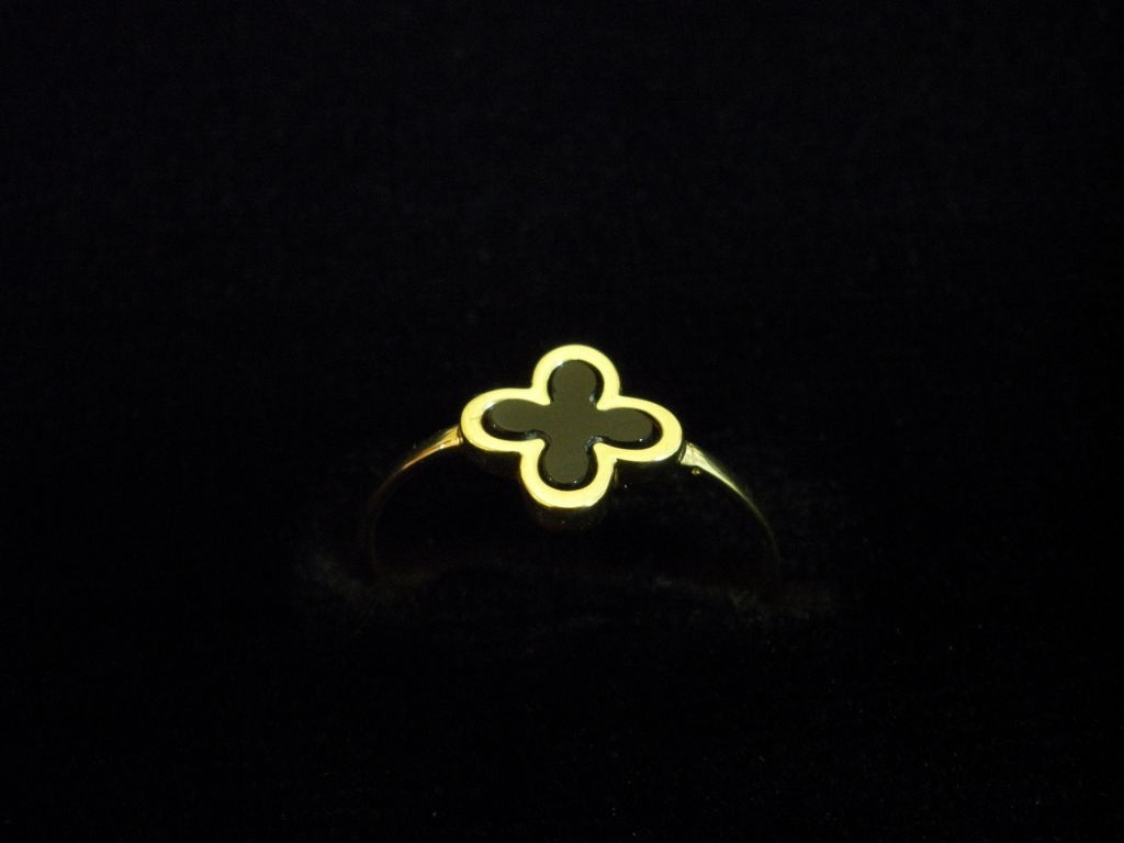Златен пръстен с орнаменти и черен седеф