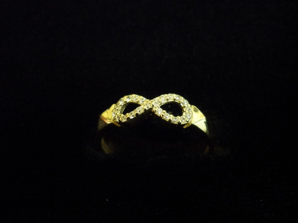 Златен пръстен безкрайност с бели камъни