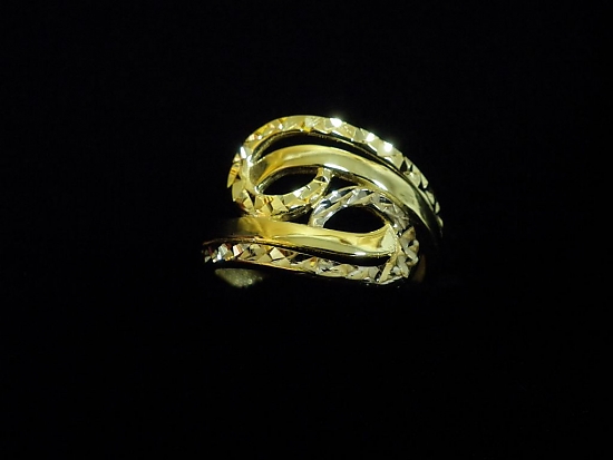 Златен пръстен с гравирано бяло и жълто злато