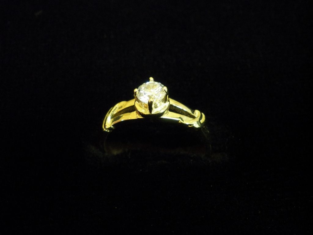 Златен пръстен годежен с бял камък