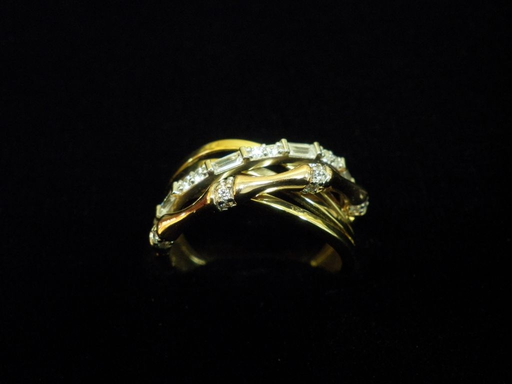 Златен пръстен от бяло, жълто и розово злато с бели камъни