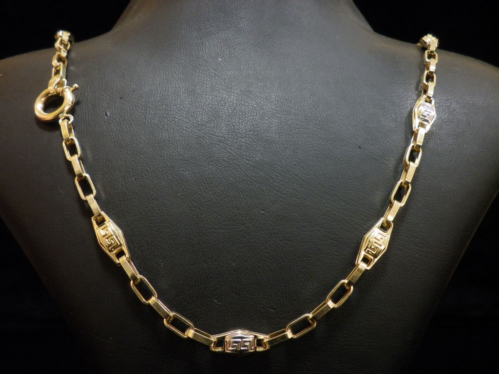 Златен синджир с елементи Версаче от бяло и жълто злато,олекотен