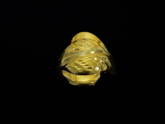 Златен пръстен с гравирано жълто злато,олекотен