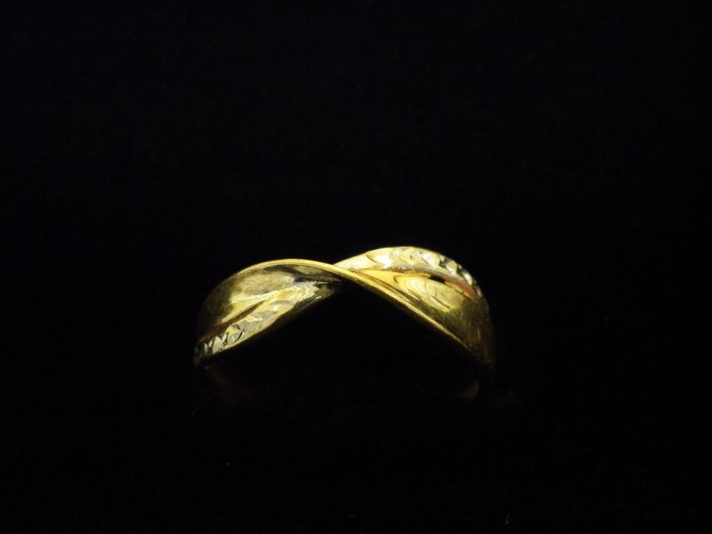 Златен пръстен с гравирано бяло и жълто злато
