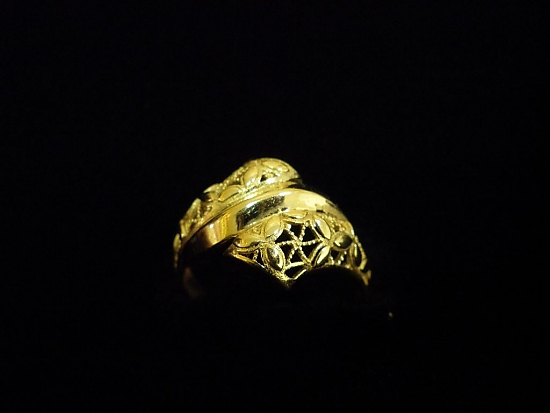 Златен пръстен с орнаменти от жълто злато,олекотен