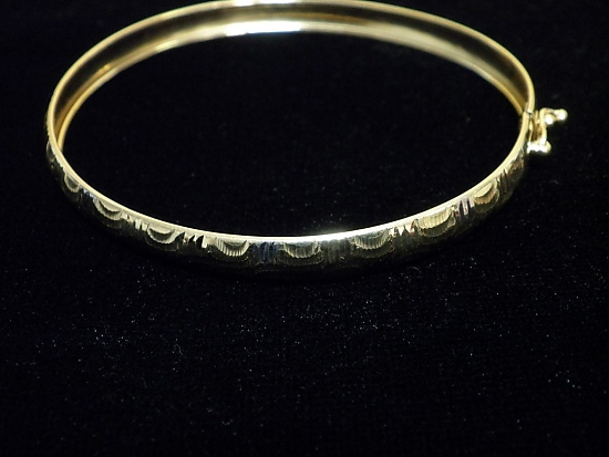 Златна твърда гривна с гравирано бяло и жълто злато