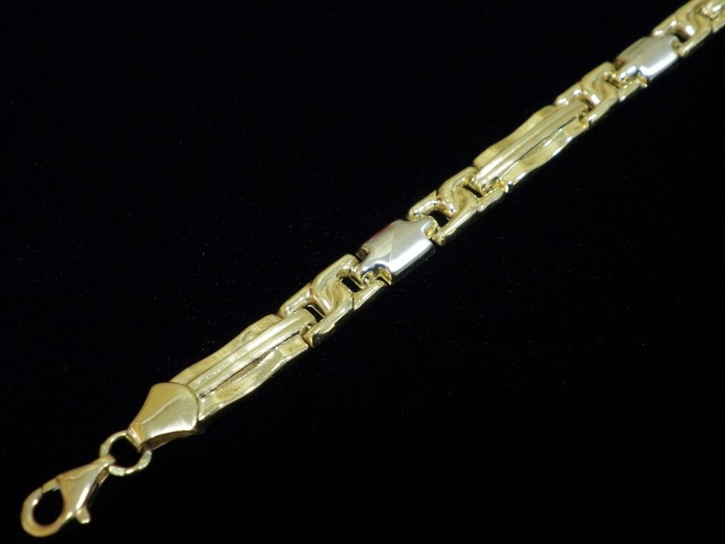 Златна синджирна гривна с елементи от бяло и жълто злато,олекотена