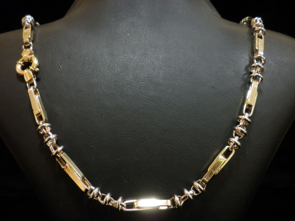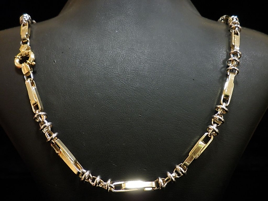 Златен синджир с елементи от бяло и жълто злато,олекотен
