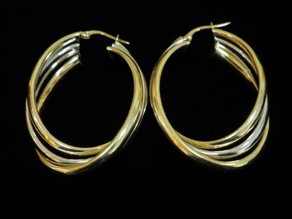 Златни обеци с бяло и жълто злато,олекотени