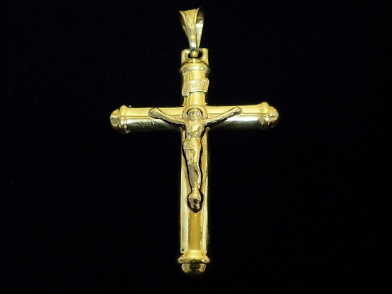 Златен кръст с Разпятие от бяло злато,олекотен