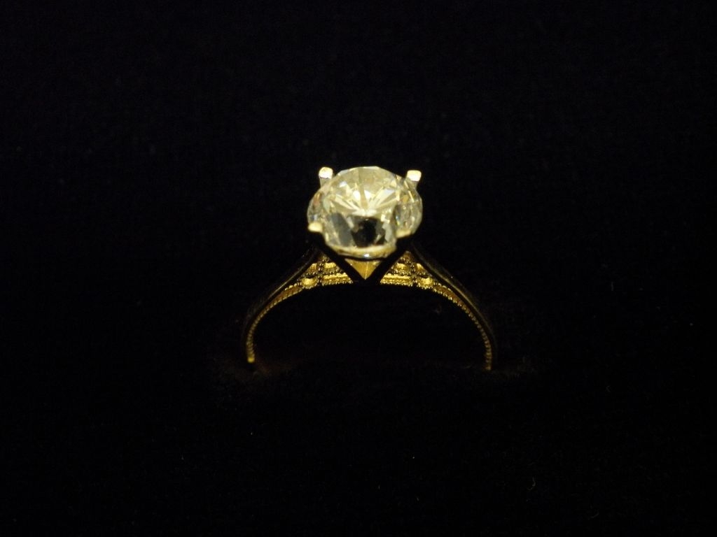 Златен пръстен годежен с бял камък