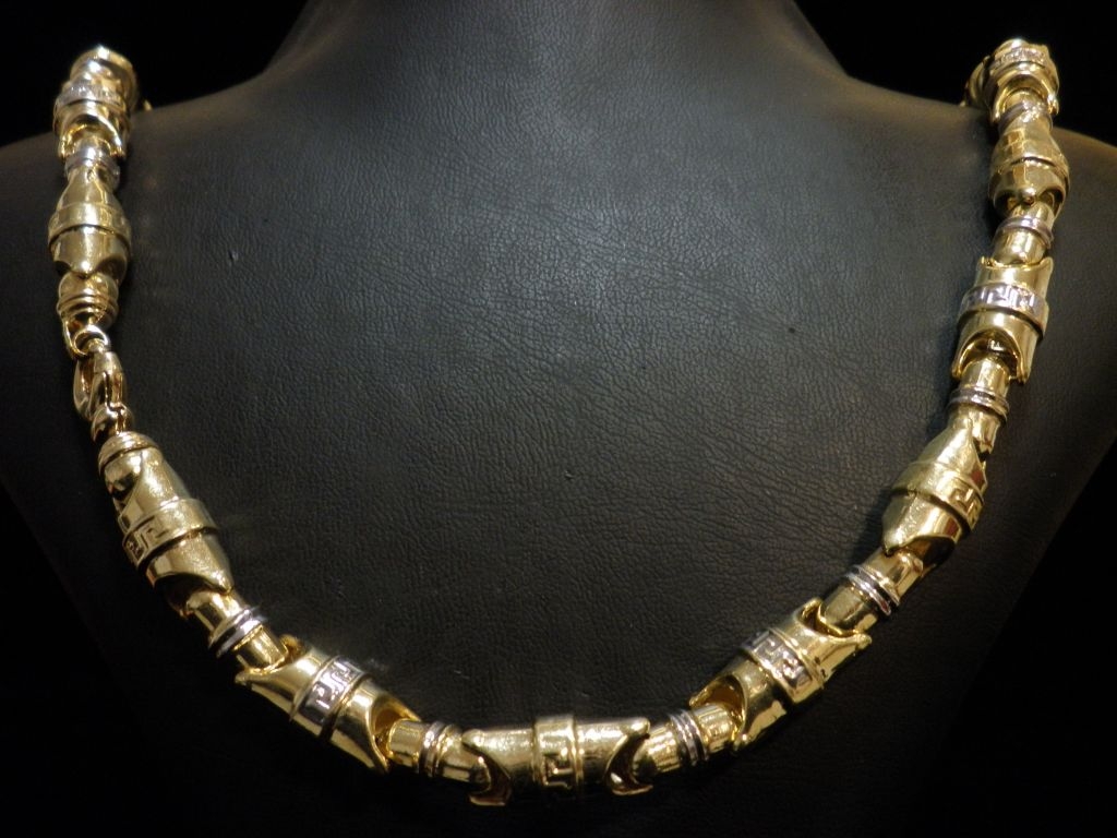 Златен синджир с елементи Версаче от бяло и жълто злато,олекотен