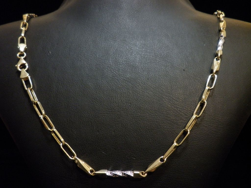 Златен синджир с елементи от бяло и жълто злато,олекотен