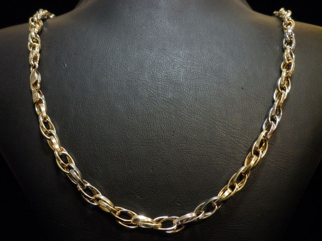Златен синджир с елементи от бяло и жълто злато,олекотен