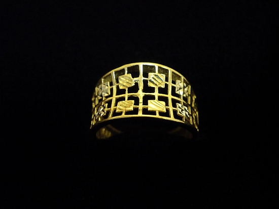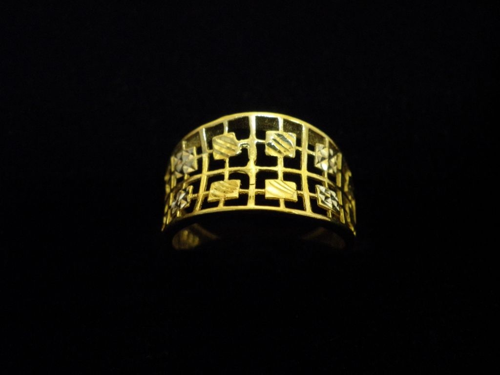 Златен пръстен с орнаменти от бяло и жълто злато,олекотен